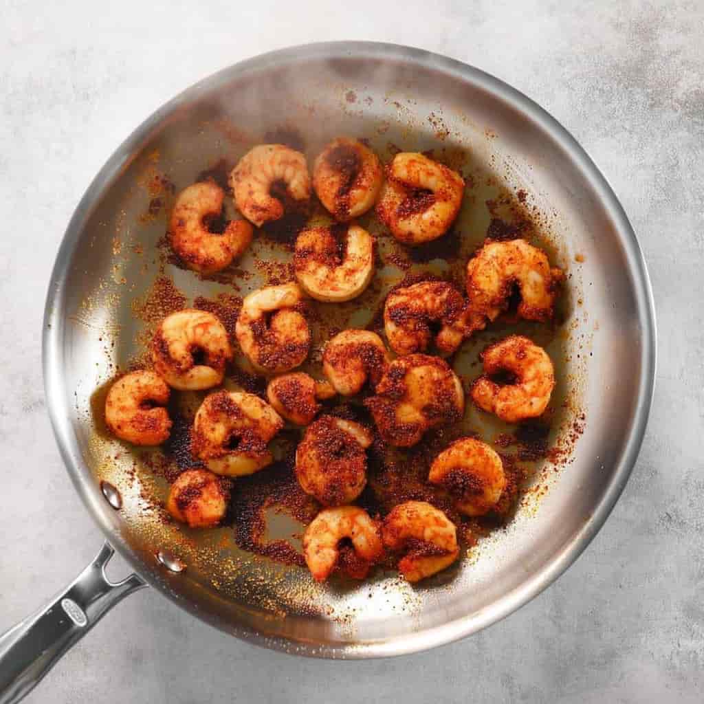 We recommend using a well-heated cast-iron or stainless-steel skillet for the best sear. Non-stick pans can work in a pinch, but they won’t develop quite the same crust. Once the shrimp are tossed with butter, garlic, and your seasoning, you’re just minutes away from taco perfection.