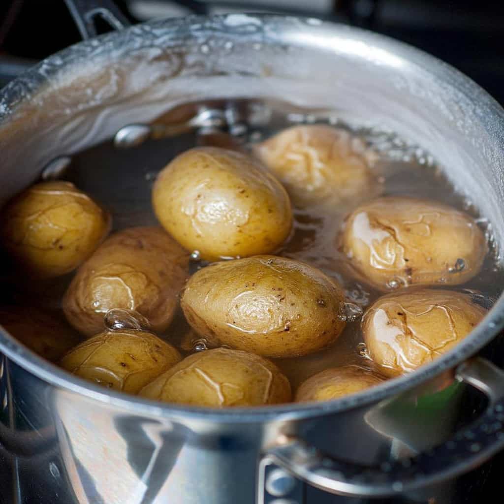 2. Place potatoes in pot, cover with water, and boil until fork-tender, 18–20 minutes.